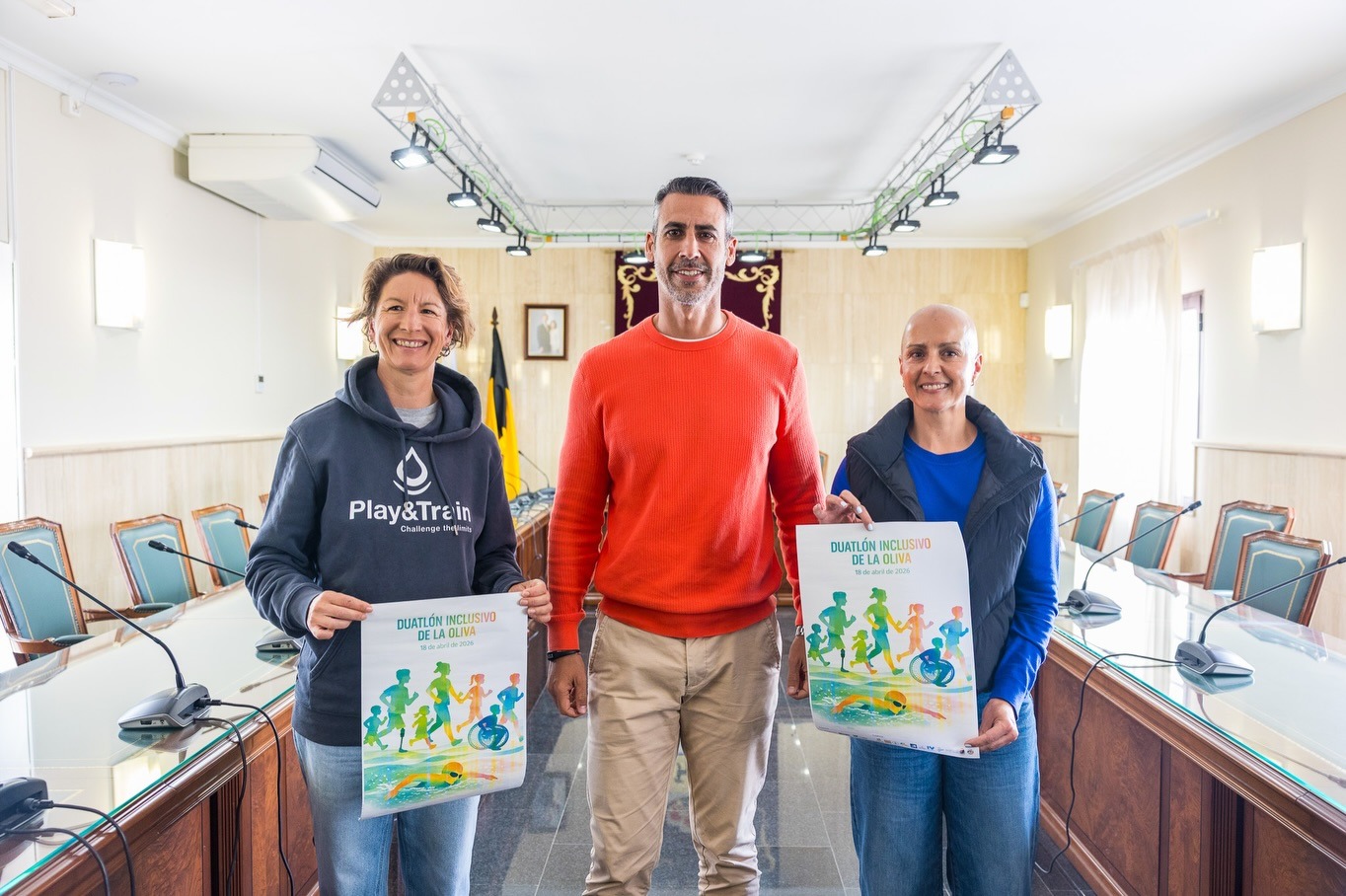 El Salón de Plenos del Ayuntamiento de La Oliva acogió la presentación oficial del I Duatlón Inclusivo La Oliva 2026, una iniciativa que refuerza el compromiso del municipio con un deporte más accesible, participativo e inclusivo. En el acto estuvieron presentes Isaí Blanco Marrero, alcalde de La Oliva; Gleiber María Carreño Lasso, concejala de Deportes; y Mariona Masdemont, en representación de Play and Train.